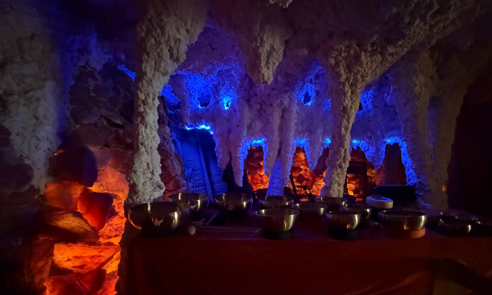 Ich arbeite auch mit der SALZGROTTE OBERHAUSEN™ zusammen. Gedimmtes Licht und eine ruhige, entspannende Atmosphäre unterstützen beim Entspannungsprozess. Mach es Dir auf komfortablen Liegen bequem und schalte den Stress des Alltags aus. In der Salzgrotte sind immer angenehme Temperaturen von 21-22 Grad.